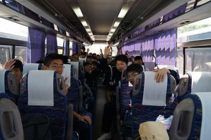 高速道路のパーキングエリアでの様子です。先生と一緒に「ハイ、ポーズ!」カシャ!