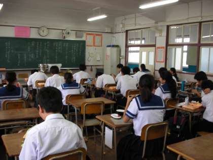 昼食の時間は、学校生活の中でも楽しい時間の一つです。みんなも良い笑顔をしています。