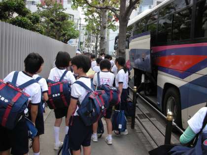 7時50分には、バスに乗り込みました。みんなワクワクしています。