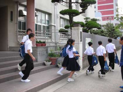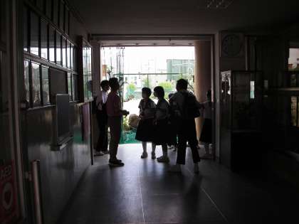 班ごとに、時間差の出発です。出発前にも最後の注意を受けています。