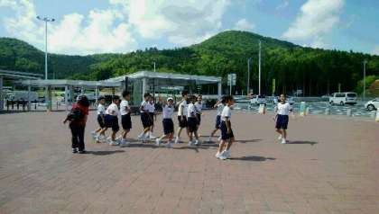 パーキングエリアでの生徒に様子です。