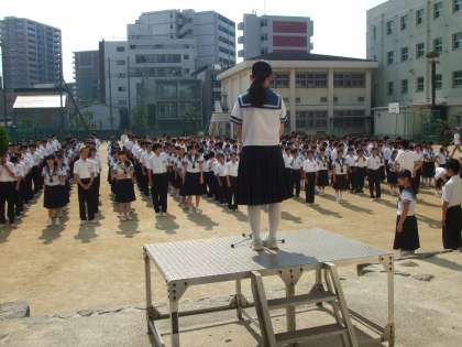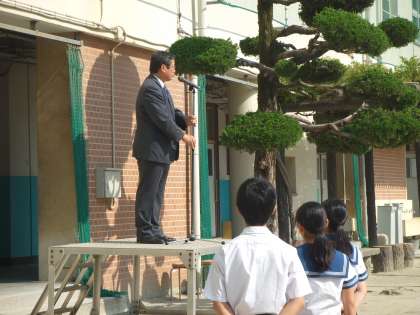 5月30日(火)5月最後の全校集会を行いました。朝から真夏を思わせるような日差しでしたがみんな元気に全校集会に参加していました。校長先生から「修学旅行、一泊移住、遠足が終わりました。次は体育大会です。体育大会に向けてみんなで頑張ってください。また、かなり暑くなってきています。熱中症にならないよう体調管理をしてください。」という話がありました。