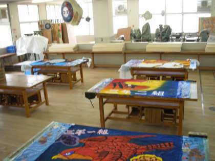 今朝早くから、3年生が20名ほど、登校してきました。「どうしたの?」と聞くと、「応援旗を作成したときの後片付けに来ました」ということです。技術室を借りて、応援旗を作成していました。借りた教室をきれいに清掃してくれました。応援旗を作成してくれた皆さん、お疲れ様でした。