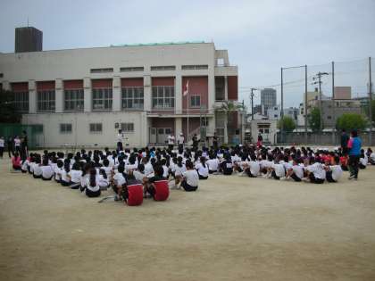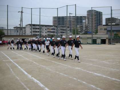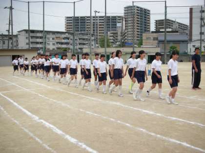 終学活後に、運動部の生徒が集まり、部活動行進の練習を行いました。堂々とした行進です。