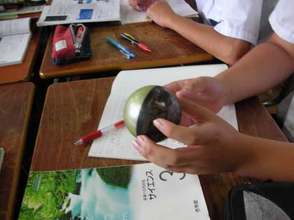 ボールを使い、地球から星がどのように見えるのか、という実習を行っていました。興味深くそのボールの動きを見ていました。