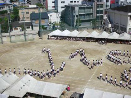 人文字で“145”という数字が出来上がりました。この形ができたところで、3年生代表からスピーチがありました(内容は、後日掲載予定)。3年生の総数135人+3年所属教員10人=145人です。人文字の145は、この数字を表しているのです。3年生は、退場まで、しっかりと行進しました。