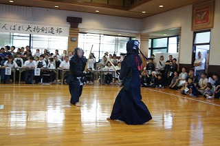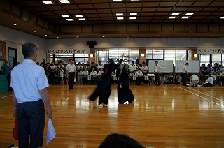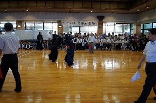 この日は、とても蒸し暑い日でした。選手たちは、防具に身を包み、さらに暑かったことでしょう。日ごろ鍛えた技を出すべく出場者は精一杯頑張っていました。