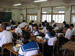 昼食時間は、給食の人、お弁当の人、パンの人と様々です。給食を食べている人は、「今日の給食は豪華な感じがする」と、答えている人もいました。