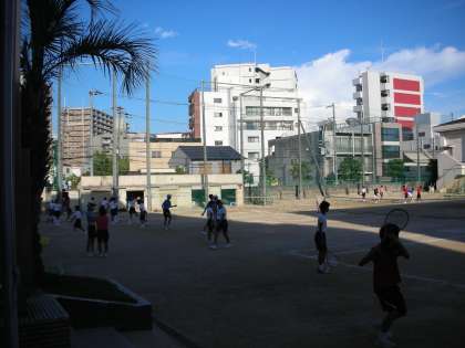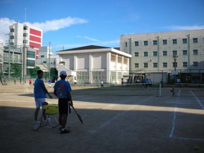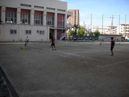 放課後は、部活動で頑張る生徒の声が響いています。グラウンドでは、ソフトテニス部と硬式テニス部が練習を行っています。