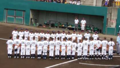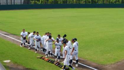 7月16日(日)野球部は第56回大阪中学校軟式優勝野球大会2回戦を高槻市古曽部防災公園野球場で五領中学と2回戦を戦いました。試合が始まります。頑張れ!!