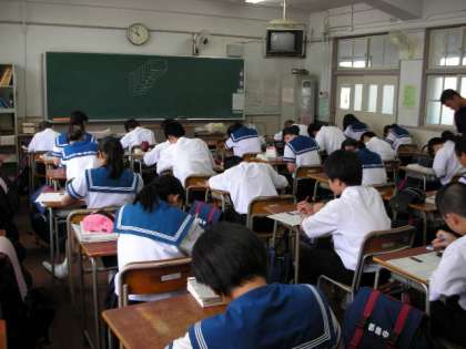 1年生の数学でも宿題のプリントが配布されました。やはり、生徒たちは一生懸命問題を解いています。