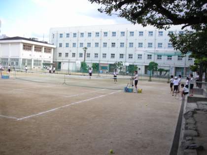 硬式テニス部は、午後から練習を行っています。みんな気合を入れて練習に励んでいます。