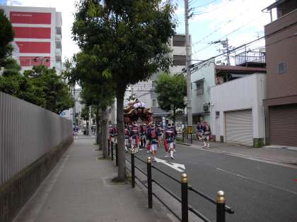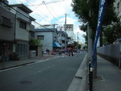 今日も桜宮神社の祭礼が行われます。だんじりが町内をお囃子のリズムに合わせて、回っています。
