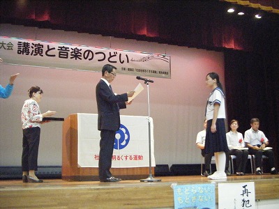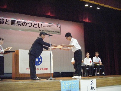 3名とも立派な態度で、表彰状を受け取りました。立ち居振る舞いがとても美しかったです。中学生の所作が周りのおとなの人にも元気さやエネルギーを与えたり、感動を与えたりもします。改めてそのことを感じさせてくれた表彰式でした。受賞した3名の皆さん、おめでとう!