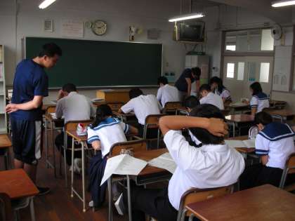 3年生は、わからない問題や、解くことができない問題があれば、先生に質問していました。とても気合が入っていました。