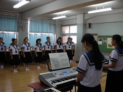 先生が不在の時は、生徒だけでしっかりと練習をしています。昨日よりも張りのある歌声だと思いました。