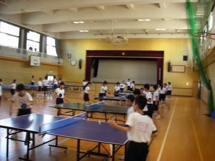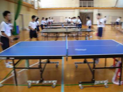 卓球部は、体育館で練習を行っています。暑い中ですが、集中力が途切れないように努めてがんばっているようです。
