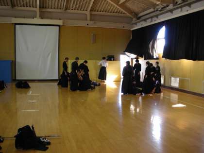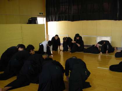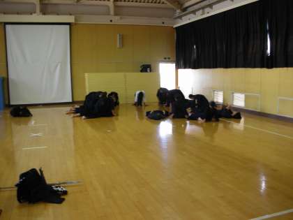 まずは、準備運動です。柔軟性を高めるためのストレッチを行っています。