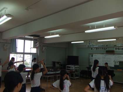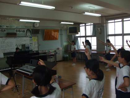 8月7日(月)音楽部は1週間後にせまったNHKコンクールに向けて練習を頑張っています。音楽室で全員での発声練習をしています。