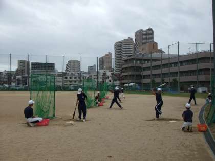 8月8日(火)野球部は台風の影響で昨日の練習試合が中止になりました。今日は雨も上がり第2グランドで練習しています