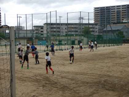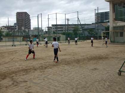8月8日(火)サッカー部は運動場で練習しています。昨日は雨のため校舎内でのトレーニングでしたが今日は運動場で練習しています。