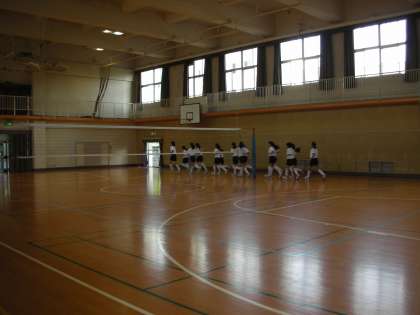 バレーボール部も朝から軽めの練習を体育館で行いました。今日は、秋の大会ということで緑中学校に出かけました。バレー部がんばれ!