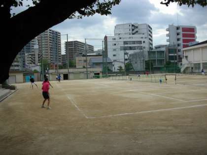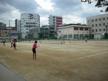 ソフトテニス部は、グラウンドで練習をしています。水分補給をしながら、練習をしています。さすが、3年生になると、今までの練習の成果が出てきています。力強い球を打ち込んでいます。
