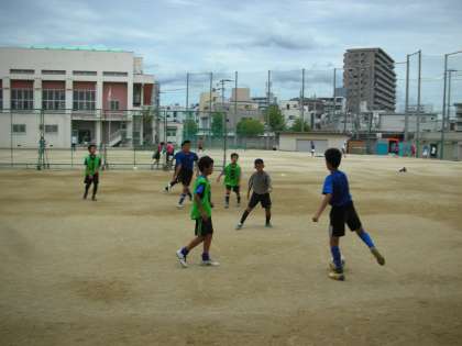 サッカー部は、日々、練習に励んでいます。猛暑の中を水分補給しながら、塩をなめながら、熱中症にならないように、練習をしています。狭いグラウンドなので、大きくコートを使うことが苦手なようです。