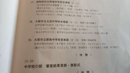 音楽部は、貝塚市のコスモスシアターで開催されている大阪府合唱コンクールに来ています。中学校の部の最後に発表します。皆さんの応援をお願いします。