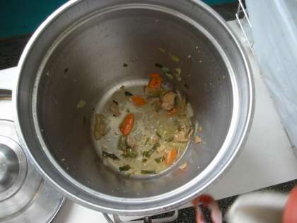 昼食後の中華丼の食缶のようすです。具が全く足りないという感じですね。