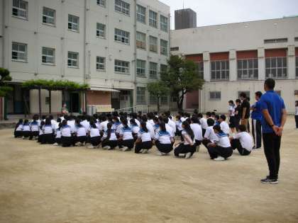 3年生は全校集会の後、その場に残り、この日の全校集会の反省会を行いました。先生から、「3年生が率先して集会の隊形を整えること。3年生が1,2年生の手本になること」という、注意がありました。