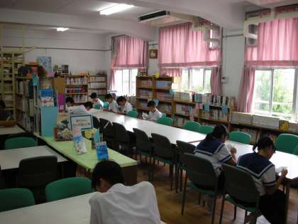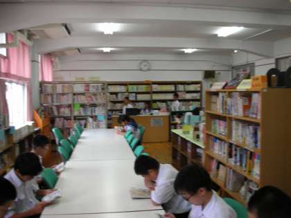 お昼休みの学校図書館の様子です。短いお昼休みですが、読書に入り込んでいる人がたくさんいます。とても良いことだと思います。読書をすると、本の主人公と同じ時代や風景に入り込み、自分が経験できない(していない)ことを仮想体験できます。様々なジャンルの本を読んでほしいものですね。