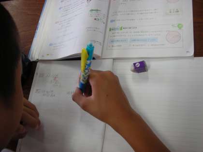 数学の授業です。少人数で授業を行っているので、先生が生徒たちのノートを点検しながら、授業を進めていくことができます。