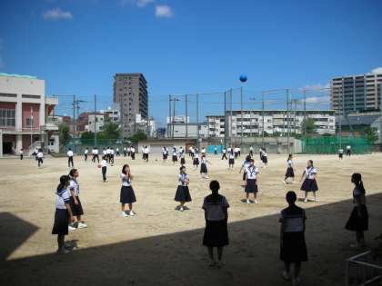とてもさわやかな空気が流れています。昼食後にグラウンドに出てボール遊びをしている生徒が大勢います。みんな仲良く一つのボールを追いかけています。