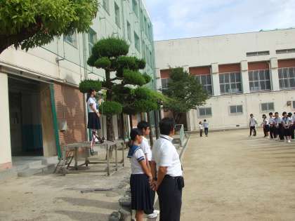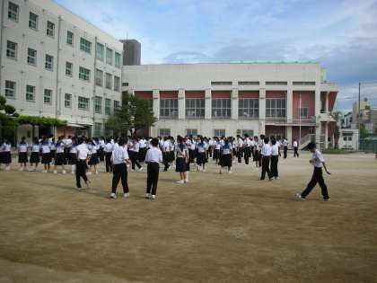 月曜日の朝、全校集会が行われます。前回は、集合が少し遅いという反省点がありました。今回は、きちんと時間前に集合することができました。