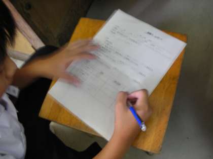 実験結果をプリントにまとめています。未来の科学者が生まれるかもしれませんね。