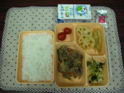 緑色、黄色、茶色、赤色と色合いはとても良いと思います。味もバランスよく、生徒たちも、「おいしいです」と、答えている人が多かったです。