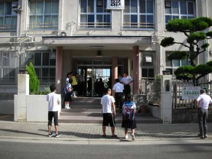 毎朝、2人の管理作業員さんが学校の周囲を清掃しています。そのおかげで、歩道はきれいな状態が保てています。