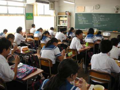 昼食の時間は、やはり大きな楽しみの一つです。給食の人もお弁当の人もパンの人もおいしそうに食べていました。