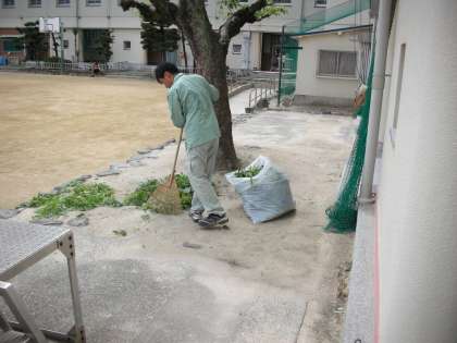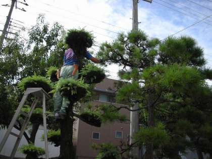 朝から管理作業員さんが、樹木の剪定を行っています。きれいにカットされていて、さっぱりとした状態になっています。