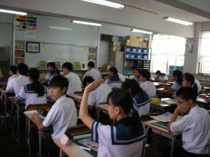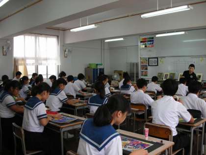 8月に比べると、かなり気温が下がってきたので、久々の美術室での授業です。今までは、暑すぎたために、クーラーのある通常学級で授業を行っていました。今日は、クーラーをつける必要がないので、美術室での授業になったわけです。