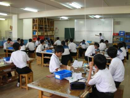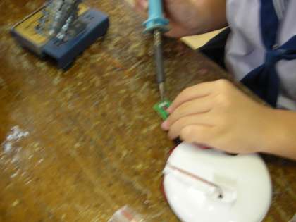 2年生は、ミニスタンドの作製に励んでいます。丁寧に配線し、はんだ付けをしています。みんな怖がらずに自分の力で、作業しています。出来上がりが楽しみです。