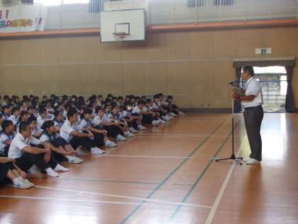校長より、最近日本の周りで起きている国際的な事実(事象)、特に、北朝鮮が発射した弾道ミサイルが日本上空を通過したこと、国連が北朝鮮を非難し制裁決議を行ったこと等を話しました。