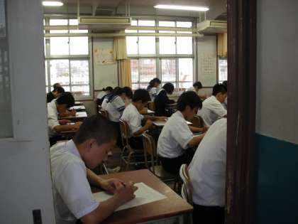 2年生の国語の授業です。 小テストを行っています。真剣に答案用紙に向かっています。