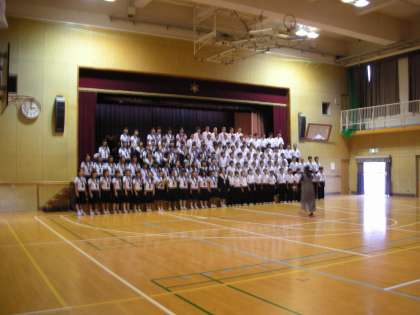 昨日の様子です。1年生は体育館で、音楽コンクールの練習を行いました。客席から舞台への移動の仕方について、全体合唱の並び方について等、とてもスムーズに行うことができたそうです。素晴らしい。写真は、全体合唱の練習をしているところです。とても大きな声で、元気さいっぱいの歌声でした。これも素晴らしい!コンクール当日がとても楽しみです。1年生の皆さん、素晴らしい舞台を期待しています。