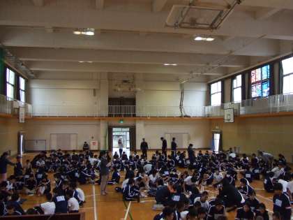 10月14日(土)土曜授業で都島消防署の方にお越しいただき救命救急の講習を受けています。体育館で班に分かれて消防署の方から丁寧に指導をしていただいています。もしもの時のために・・・