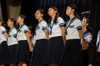 音楽部の美しいコーラスです。歌いながら、様々な振り付けをしながら、楽しませてくれました。