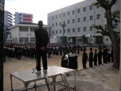 全校集会は、毎週月曜日に行うことになっています。しかし、昨日は、『1年生の英語能力判定テスト』が行われたので、本日に延期になりました。