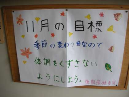 生徒会保健委員会でも、体調管理の呼び掛けをしています。栄養バランスの良い食事をとり、睡眠時間を十分にとって、健康状態を保ちましょう。