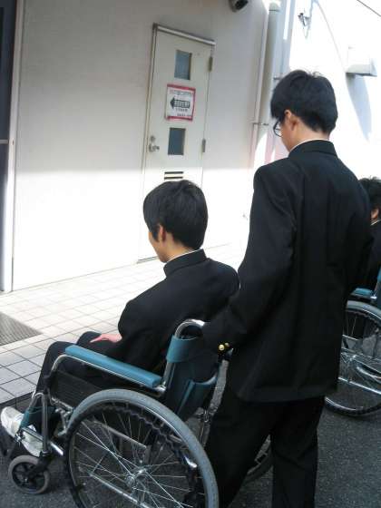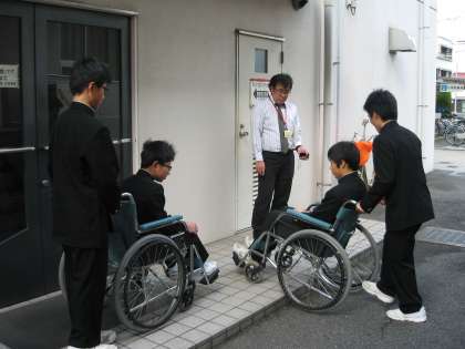 2年生の職業体験を11月9日(木)〜10(金)各事業所で実施しています。子どもたちは学校では経験できない貴重な経験をしています。写真は都島区役所で選挙事務の仕事を体験させていただいています。その一環としての車いす体験です。職業体験は各事業所の皆様のご厚意によるものです。ありがとうございます。今日、明日とどうぞよろしくお願いいたします。